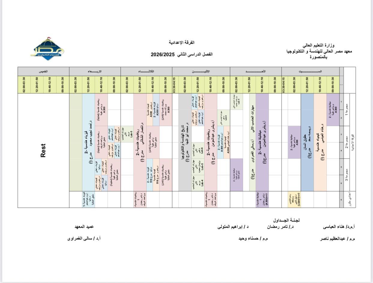 معهد مصر العالى للهندسة والتكنولوجيا -وحدة تكنولوجيا المعلومات © 2013-2025