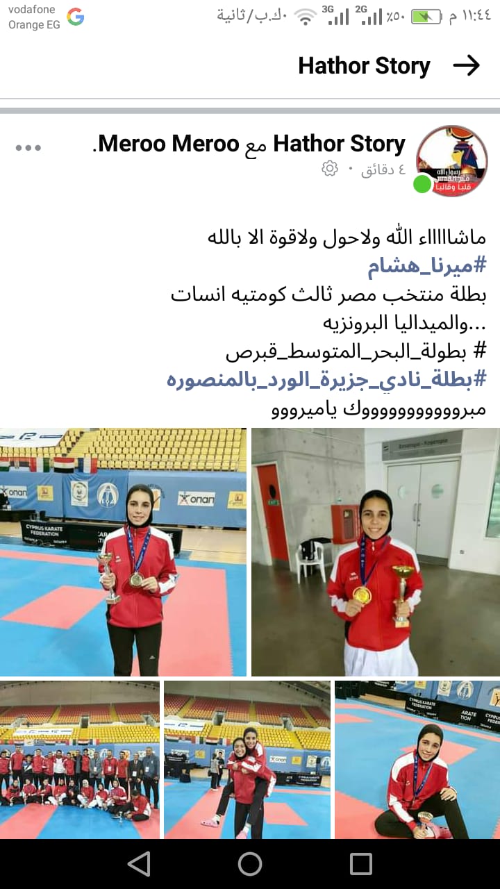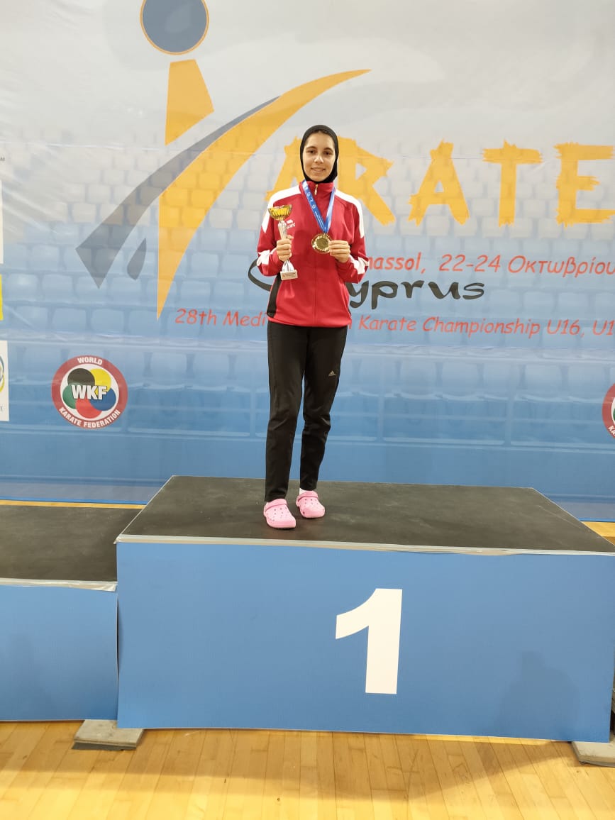 تهنئة من عمديد المعهد ووكيل المعهد لشئون لتعليم للطالبة ميرنا هشام عطية لحصولها على المركز الاول في بطولة الجمهورية للمعاهد لعبه الكاراتيه و المركز التاني بطولة الجامعات جمهوري و المركز التالت بطولة البحر المتوسط بقبرص