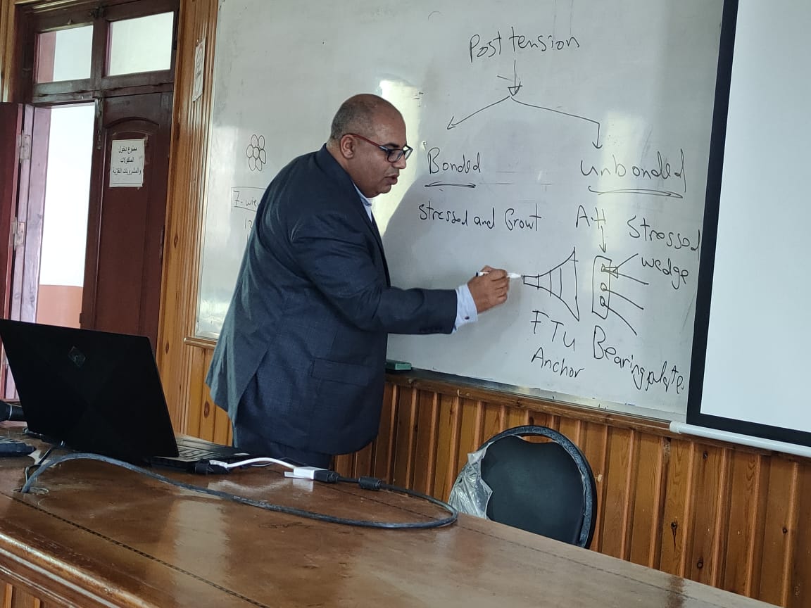 الهدف من الندوة: ربط ما يتم دراسته في مناهج الخرسانة سابقة الإجهاد بسوق العمل و إمكانية التطبيق العملي للدراسة – و مدى انتشار و قابلية هذا النوع من الخرسانات للتنفيذ الفعلي في سوق العمل – زيادة معرفة و مهارة الطالب بهذا النوع من الخرسانة