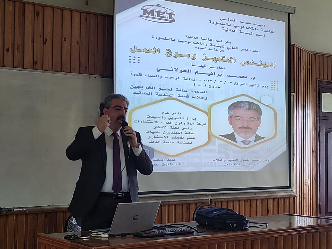 الهدف من الندوة: التوعية بمتطلبات سوق العمل في الهندسة المدنية – التعريف بمقومات المهندس المتميز – التوعية بضرورة تحديد المسار المهني لكل تخصص مختلف – التوعية بمهام و متطلبات و حقوق و التزامات اطراف المشروع المختلفة – كيفية بناء السيرة الذاتية المتميزة بناء على مقومات المهندس المتميز و التخصص و المسار المهني.