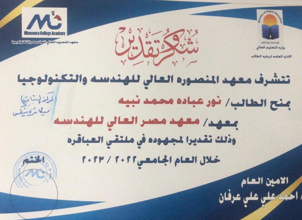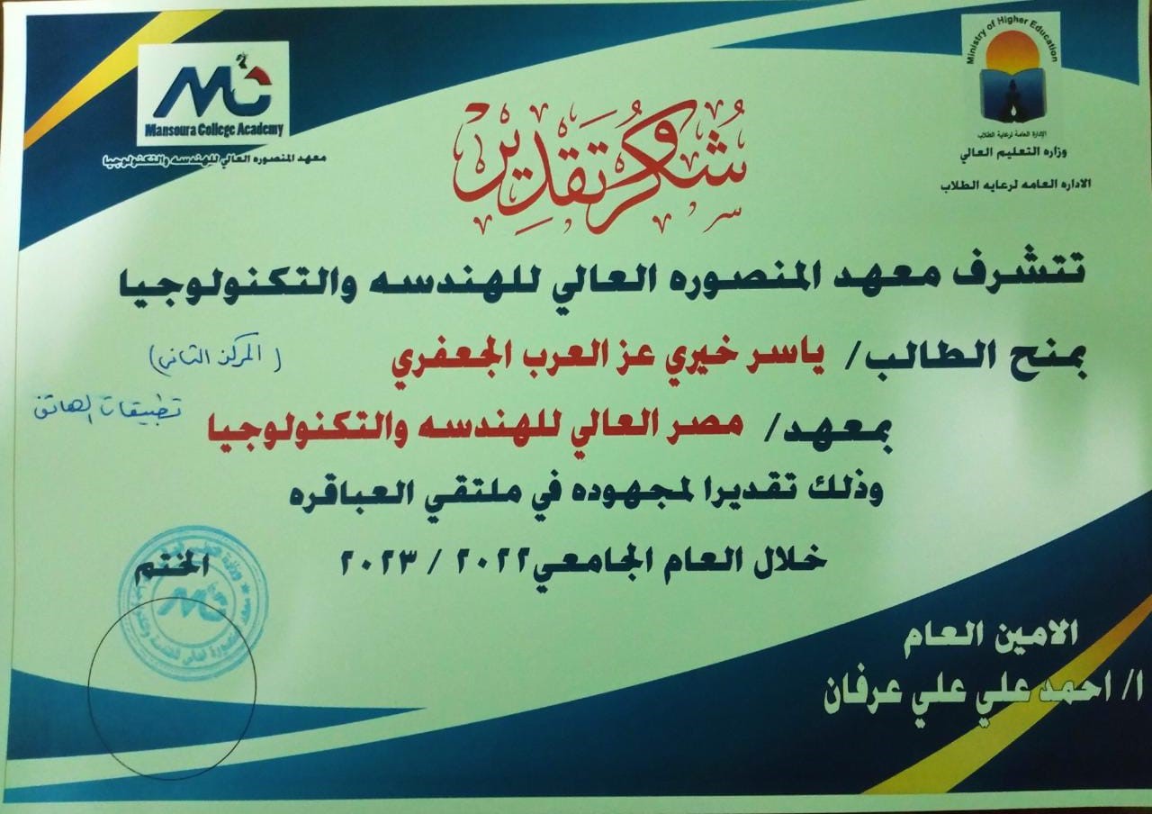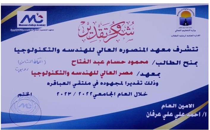 شارك بالمسابقة خمسة مشاريع من قسم الاتصالات والحاسبات بمعهد مصر العالي للهندسة والتكنولوجيا للعام الدراسي 2023/ 2022